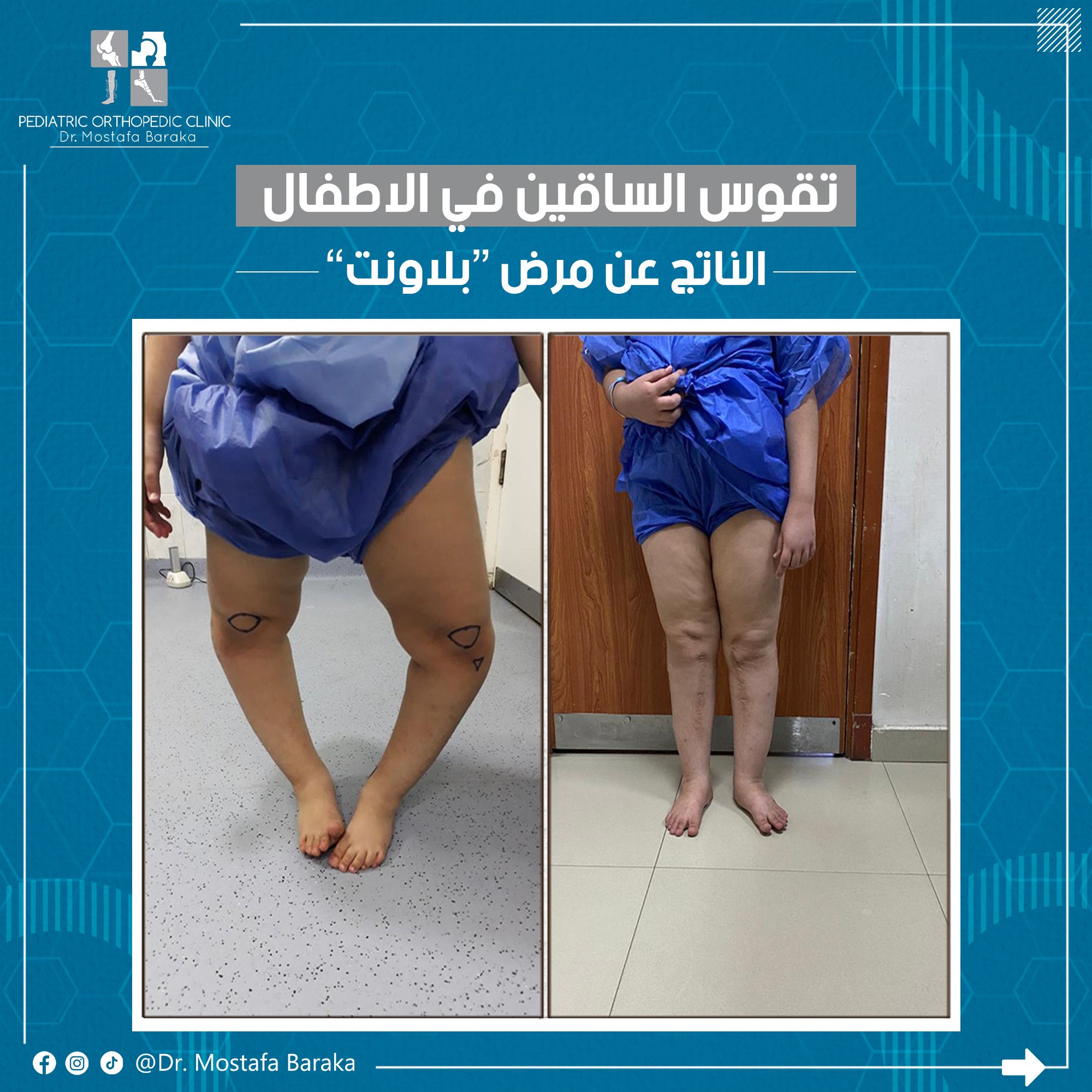 Blount's disease is a common disorder that affects the legs in children. This disease is characterized by deformity of the upper leg area, causing abnormal curvature of the legs. This disease usually begins around the age of two or three and may progress over time if it is not treated. Children with Blount's disease may need early treatment to improve their posture and motor functions.